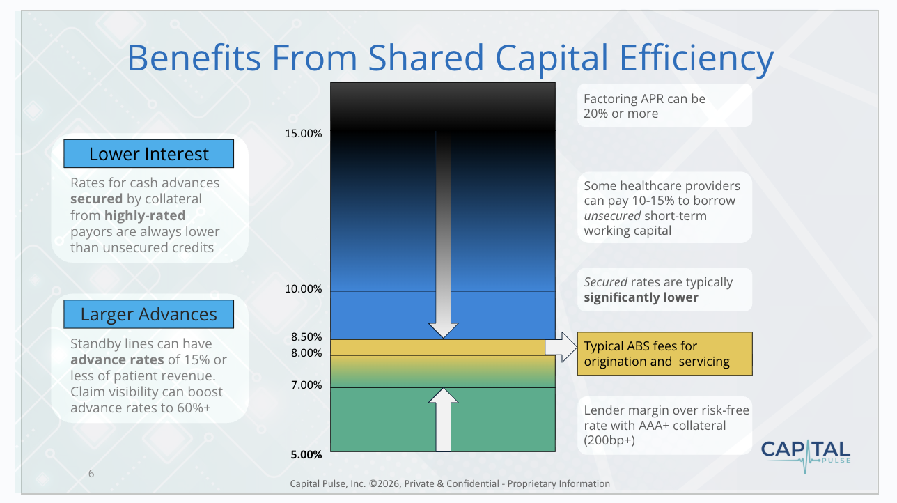 This is healthcare financing as it should be: efficient pricing based on actual, quantifiable high-credit quality risk, immediate access to earned revenue, and resources directed toward patient care.